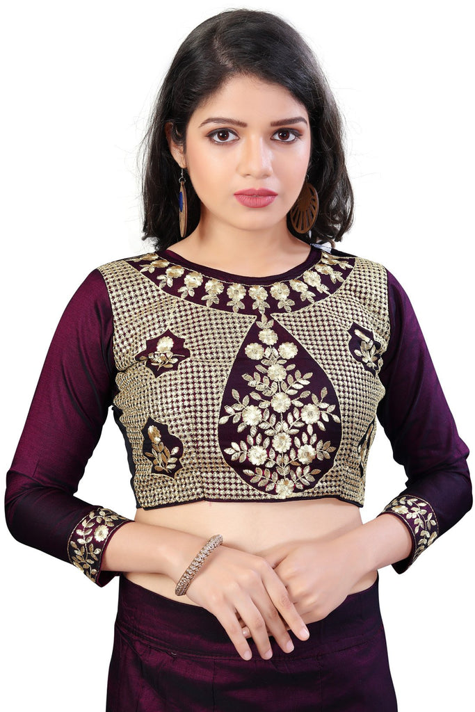 Eralook taffeta Sona Wine lehengha choli for women(free size, Multicolour)